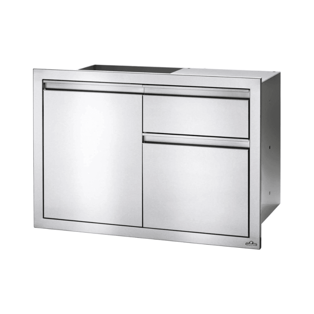 Creating your own custom grill island has never been easier with Napoleon’s Built-In Components. Every great outdoor kitchen needs storage; this 36″ x 24″ built-in component has everything you need for storage. Featuring two generous drawers and a single large door for storage. The stainless steel construction, soft closing hardware, seamless trim, and anodized aluminum handles provide durability and endless installation possibilities.