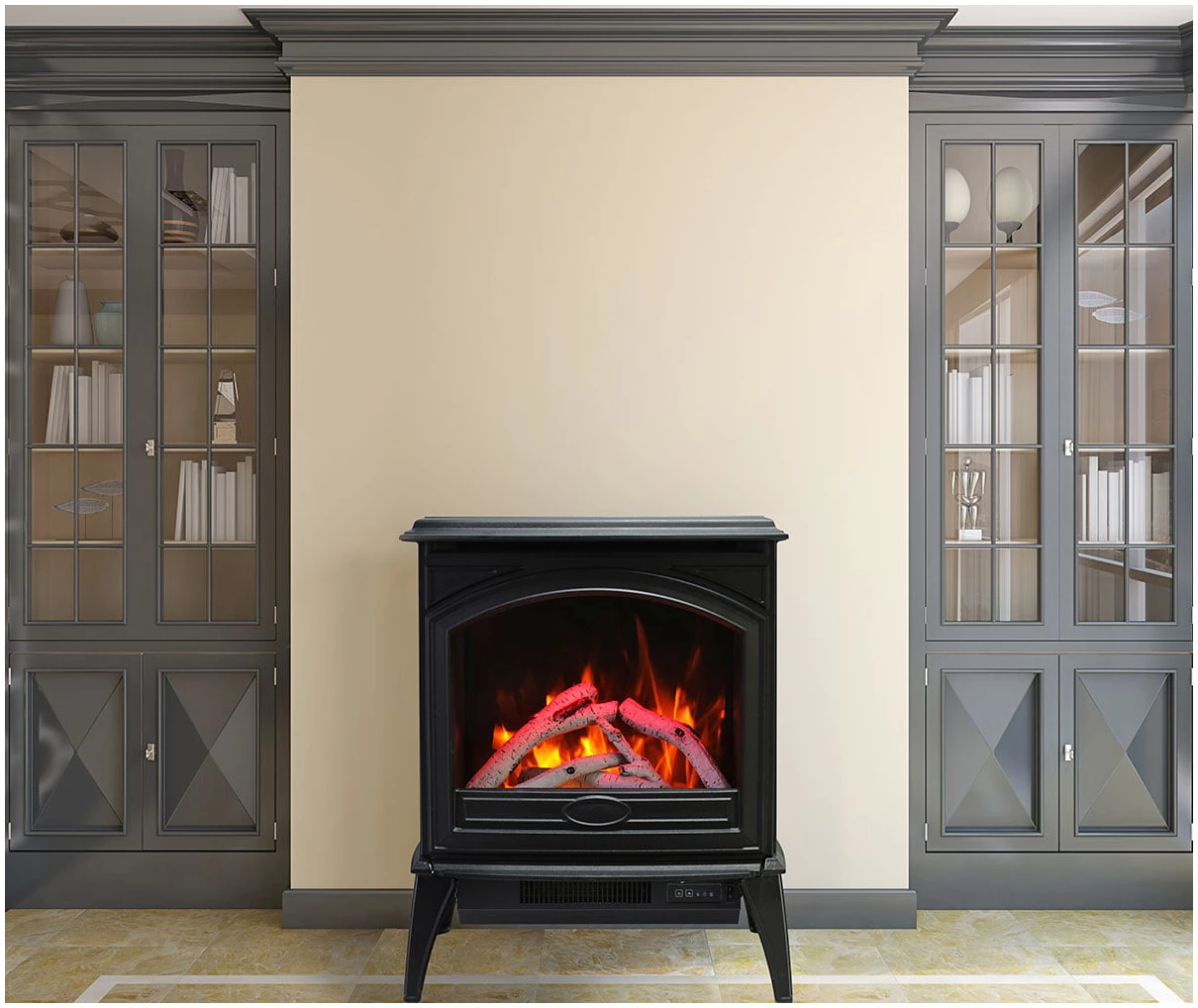 With no installation boundaries, no need for mounting brackets or building into a wall, this free standing iron electric fireplace model can go in any room you like.