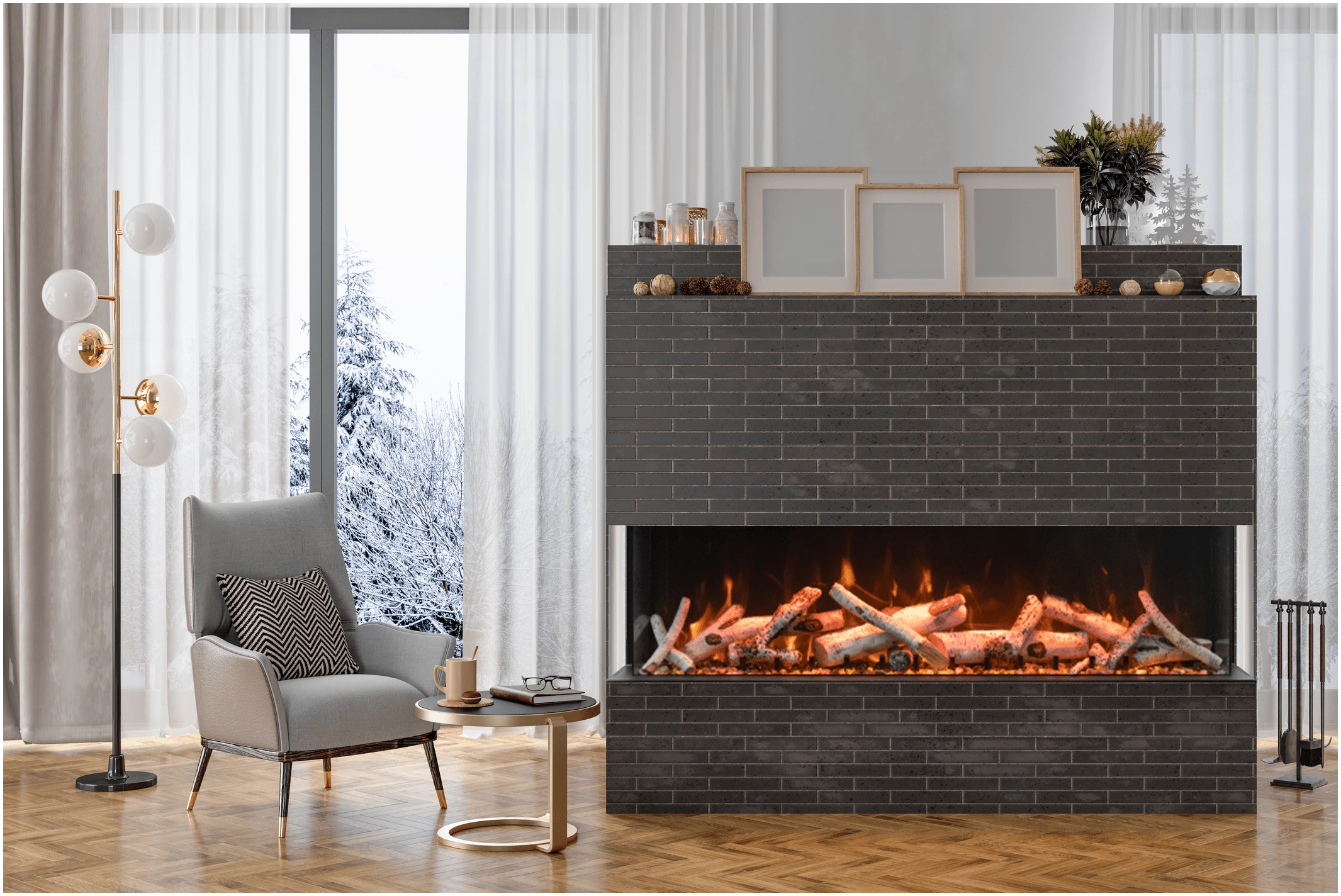 Looking for extra heat? Our Tru-View XL Deep Smart 50″, 60″, 72″ and 88″ electric fireplace can produce extra heat output when hooked up to 240 v.