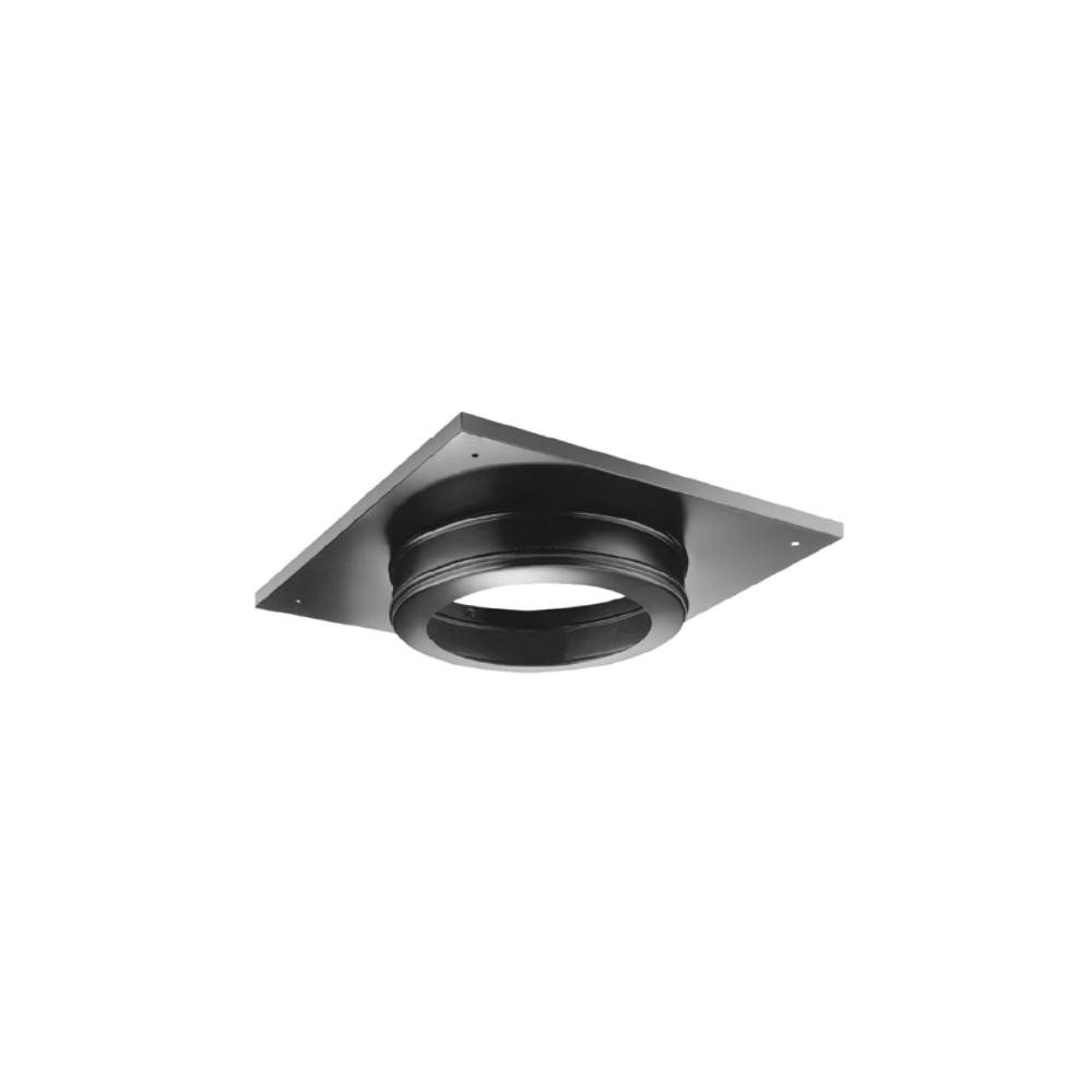 Decorative cover for ceiling support boxes and wall lugs. Painted black. Use with a reduction collar.