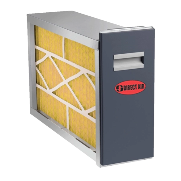 The Direct Air high-efficiency air filter is designed for space-saving vertical installation. Removes house dust, insecticide dust, moths, pollen, mold spores, bacteria, dander, cooking smoke and grease, tobacco smoke, fine particles, and more down to 0.3 microns (1/84,000 of an inch).