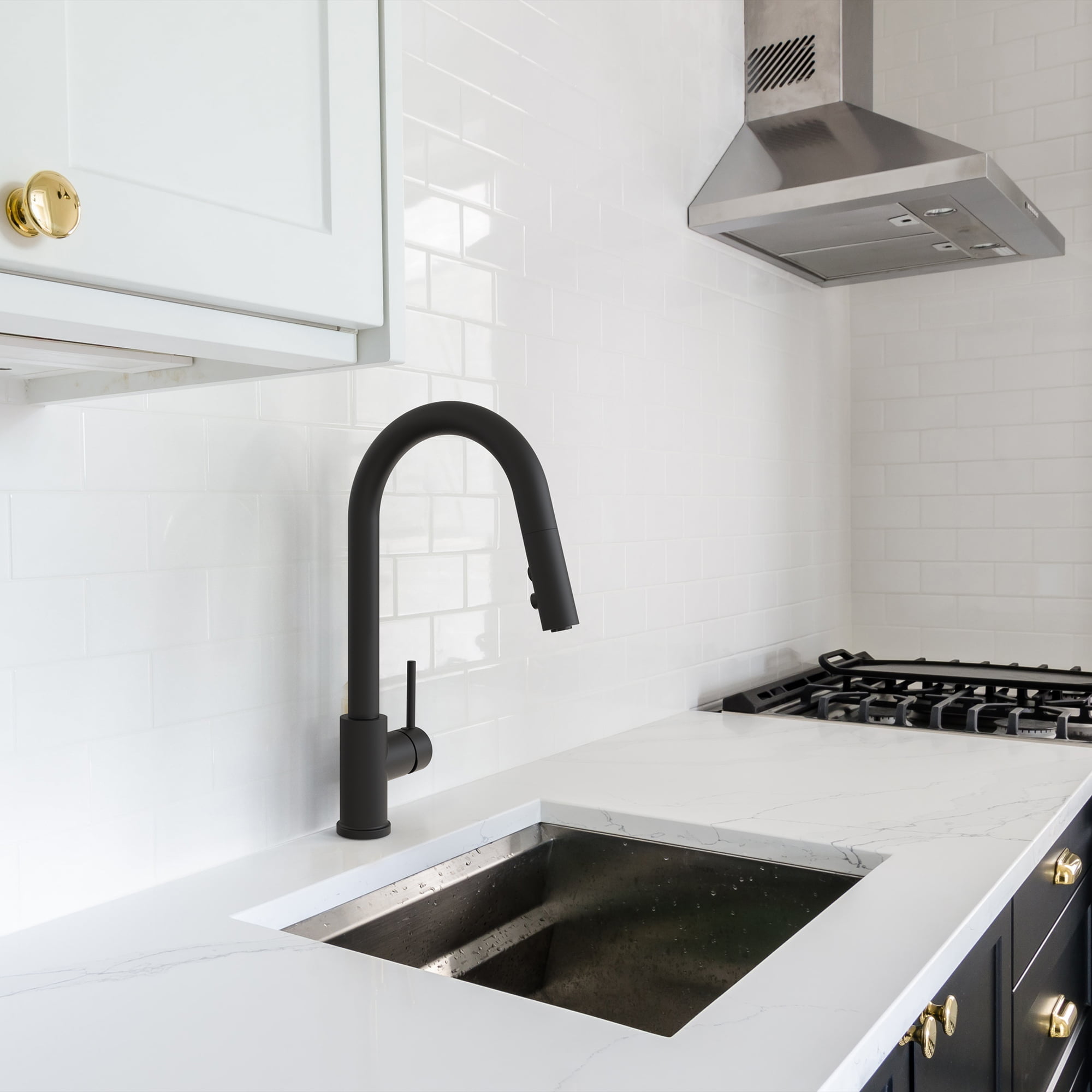 • 3/8” (9/16-24 UNEF) connections with flexible nylon braided connectors