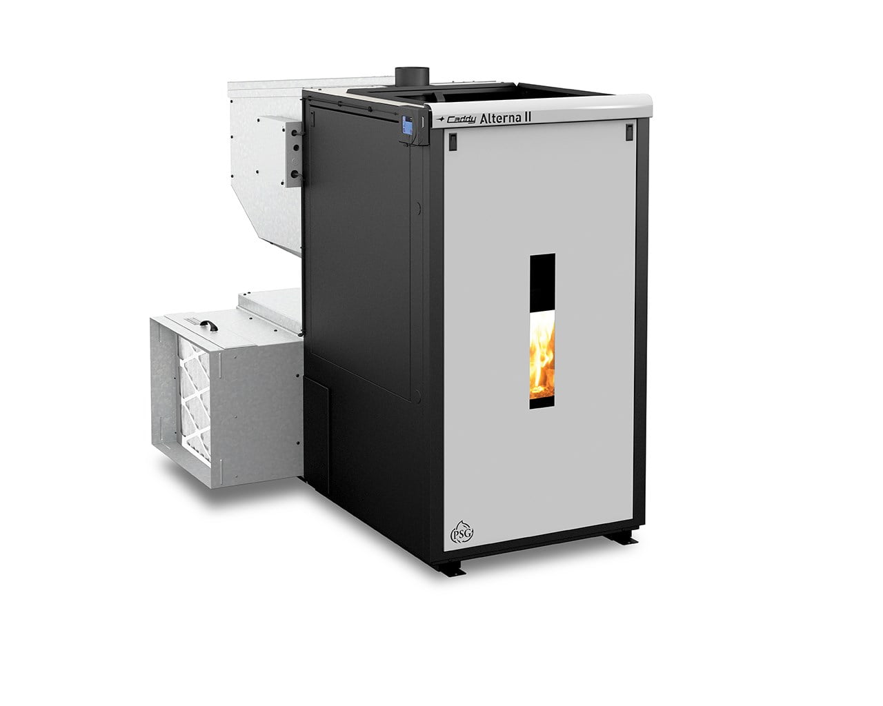 The Caddy Alterna II pellet furnace offers great heating autonomy due to its 240 lb (110 kg) hopper capacity. Furthermore, its optional electrical system allows it to continue to operate when the furnace runs out of pellets.