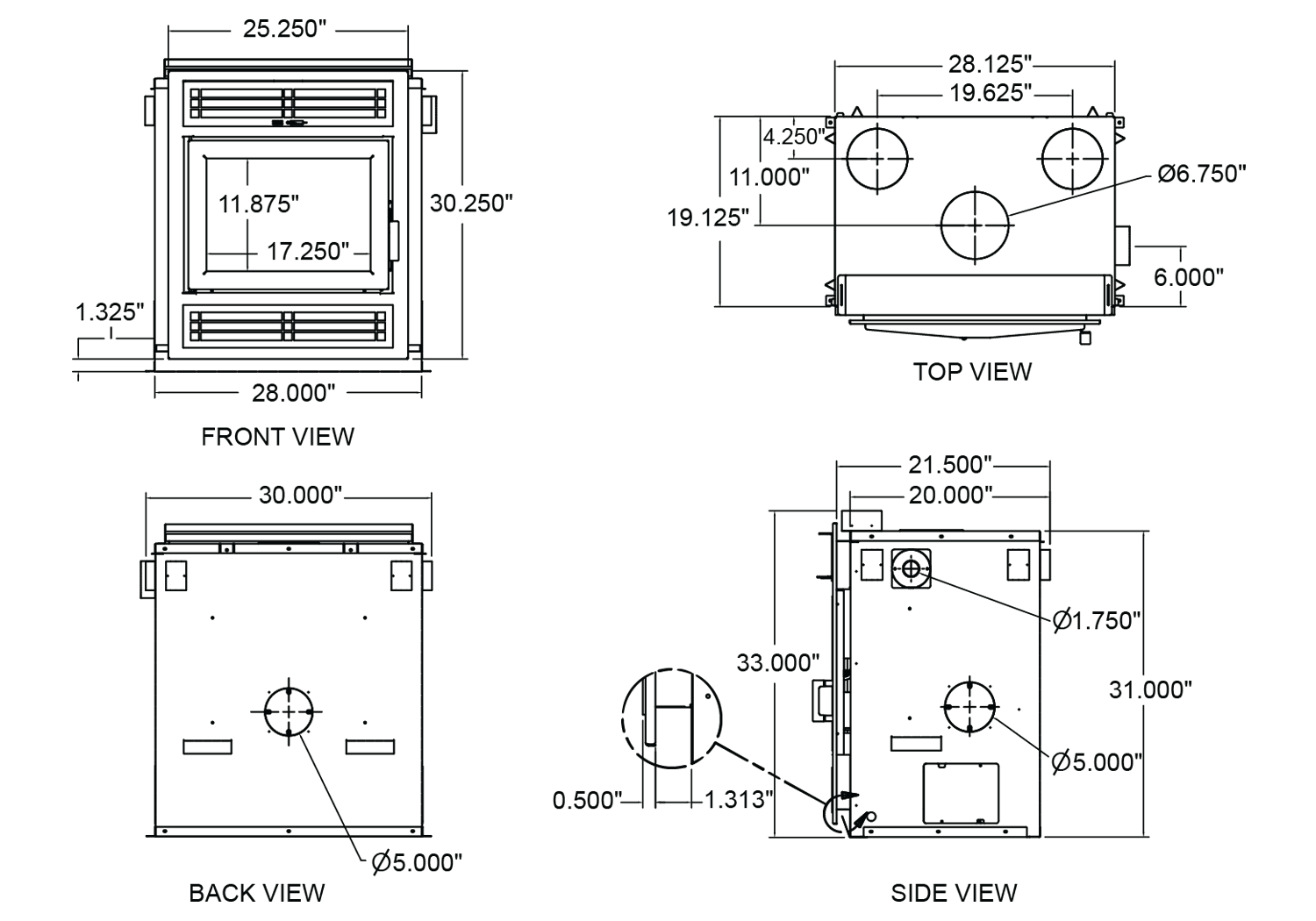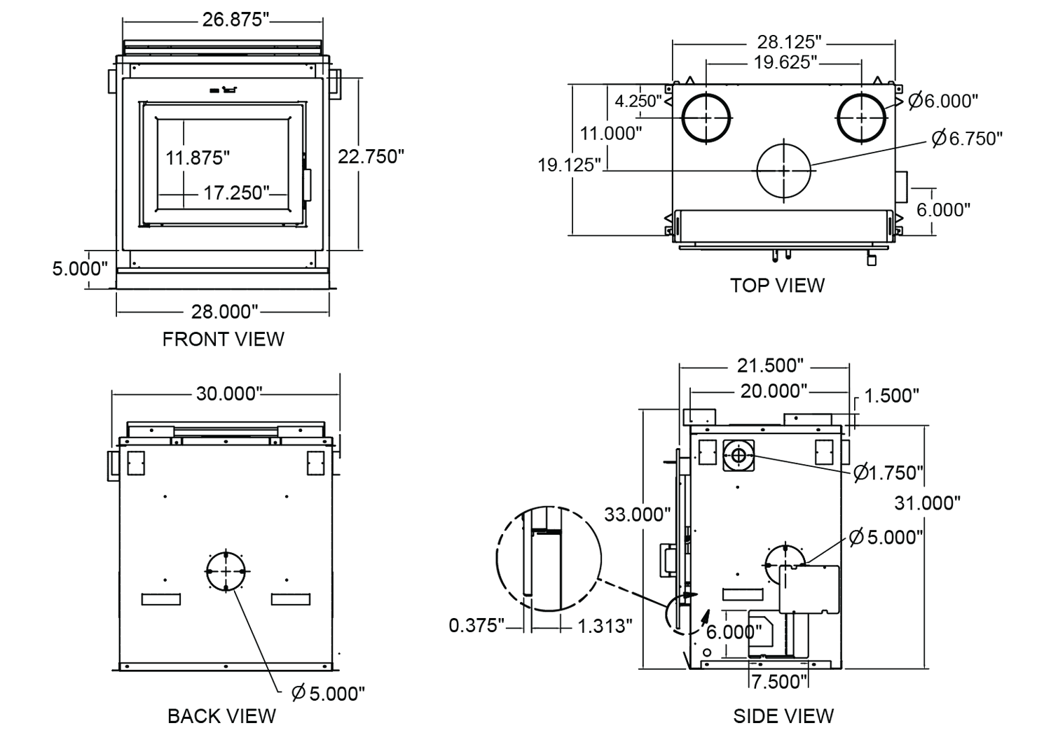 | Chimney: | 6 inch listed to UL 103/ULC S629 standards |