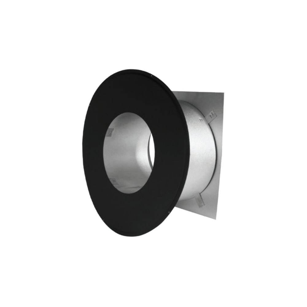 Designed to protect surrounding combustible materials when a chimney passes through a wall. Adapts to 7″ wall thickness. to 12 in. Can be adjusted for use with thinner walls. Includes decorative painted collar for interior finish. Insulated to prevent heat loss or cold air intrusion.