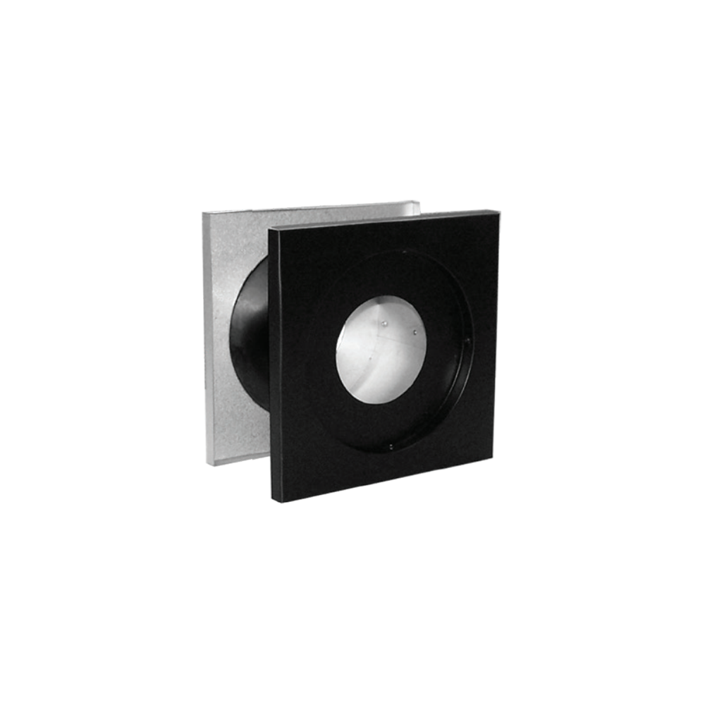 Use for through-the-wall installations. Fits between standard wall studs. Supplied with an insulating ring to reduce air infiltration where the pipe slides through the firestop.