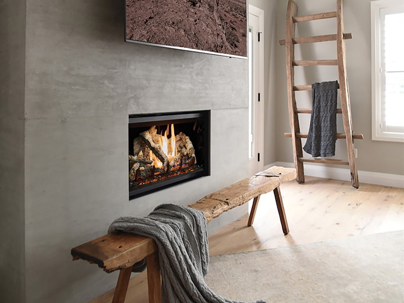 La conception peu profonde de la chambre de combustion du 564 TRV 25K CF prend moins de place dans votre maison, ce qui simplifie l’installation de ce foyer. Cela vous permet d’ajouter du feu à presque toutes les pièces de votre maison. Ce foyer à ventilation supérieure ou arrière (TRV) de 25 000 BTU présente un aspect « face nette » sans grilles ni façade. Le 564 TRV 25K CF est un modèle de luxe livré en standard avec un nouvel éclairage de lit de braises Ember-Glo™, des lumières d’accentuation réglables et votre choix d’ensembles de bûches classiques en chêne ou en bouleau. Vous pouvez également ajouter l’option CoolSmart TV Wall™.