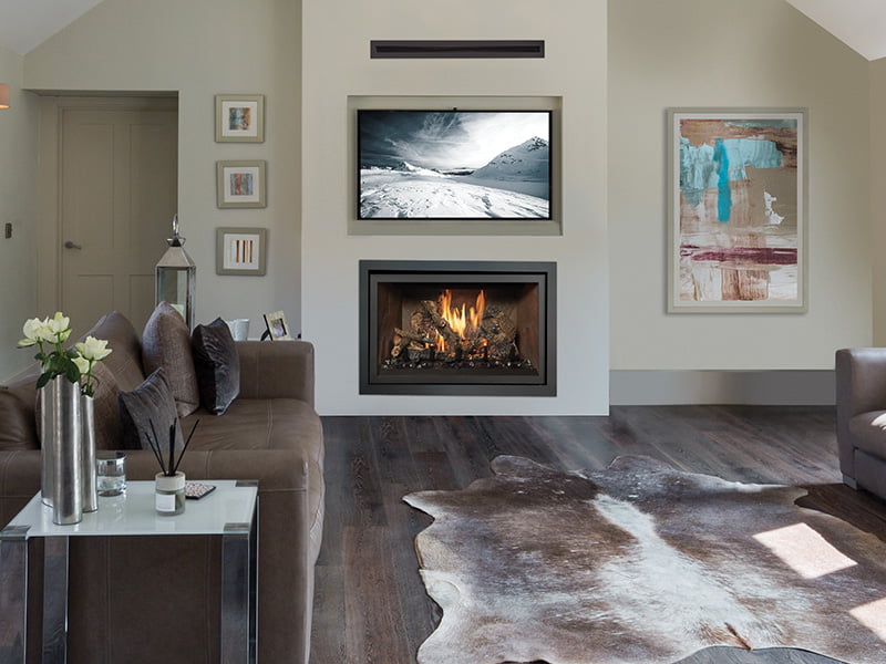 Le 564 TV 35K Clean Face Deluxe est un foyer de taille moyenne qui délivre une grande chaleur. Avec une entrée de 35 000 BTU et une vitre céramique à transfert de chaleur élevé, ce modèle à haut rendement est idéal pour les grands espaces de votre maison ou les climats plus froids. Ce foyer présente des flammes dansantes massives et un éclairage réaliste du lit de braises Ember-Glo™, avec votre choix d’ensembles de bûches classiques en chêne ou en bouleau de 10 pièces très détaillées.Le style « Clean Face » de ce modèle est conçu pour ressembler à l’apparence d’une cheminée traditionnelle ouverte avec une garniture minimale autour de la vitre d’observation du feu. Le 564 Top Vent (TV) 35K est un foyer de luxe entièrement équipé qui comprend la télécommande GreenSmart®, un ventilateur à convection de 180 CFM, des lumières d’accentuation et le kit CoolSmart TV Wall™ en option.