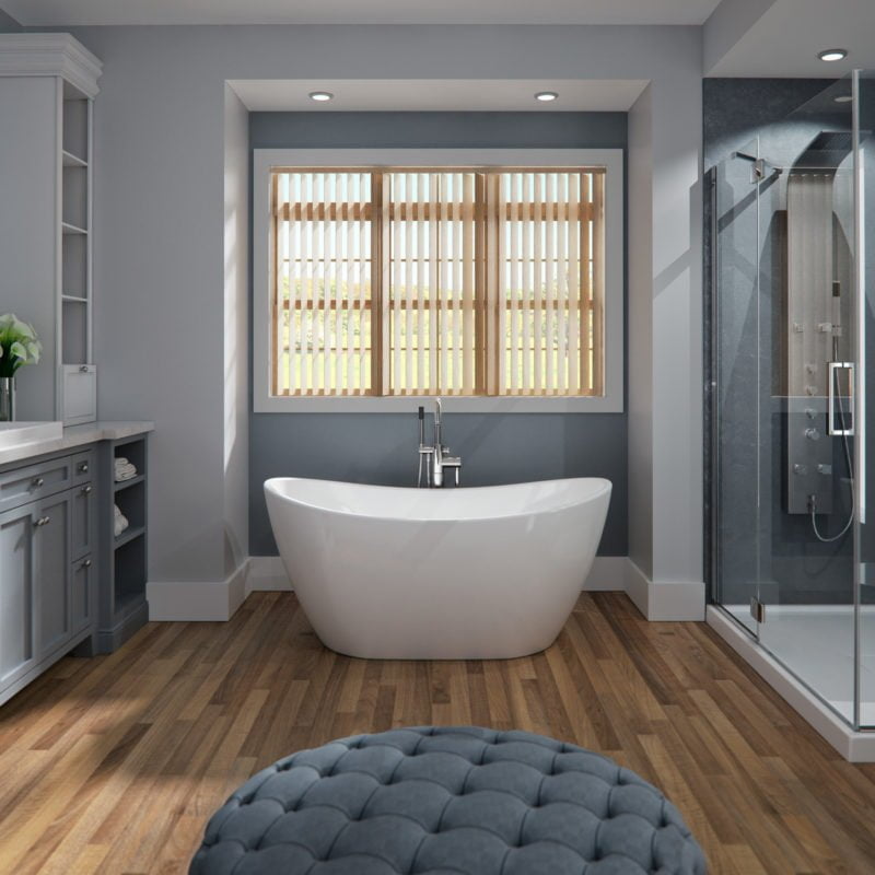 Pattes ajustables Style contemporain Fond surélevé (AFR) Trop-plein linéaire et drain intégré inclus, chrome CAPACITÉ D’EAU: 61 gallons