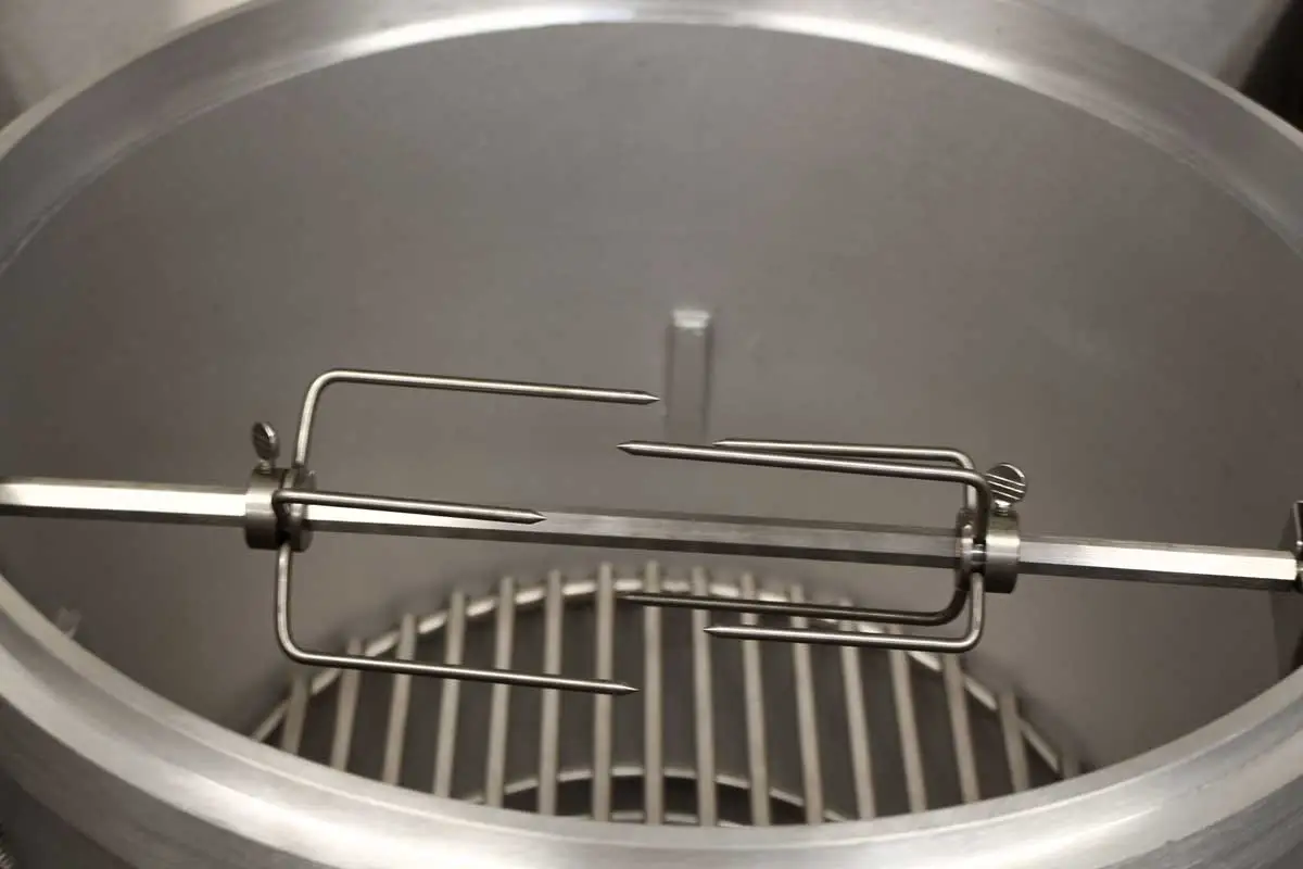 L’ajout d’un kit de rôtisserie vous permet d’élargir vos options de grillades et de rôtir du poulet entier, de la longe de porc, des rôtis de bœuf et plus encore dans votre gril kamado. Lorsqu’il est utilisé avec le panier à charbon arrière, vous pouvez cuire des aliments avec une chaleur infrarouge arrière indirecte, ce qui permet d’obtenir des aliments qui conservent davantage leur propre saveur naturelle. Le moteur étanche de 120 V est enfermé dans un boîtier en acier inoxydable pour résister aux éléments extérieurs. Le Rotis est garanti 1 an au propriétaire d’origine contre les défauts de fabrication et de fabrication. Cette garantie s’étend à l’acheteur d’origine contre les défauts de fabrication pour les produits achetés pour une utilisation domestique unifamiliale ordinaire.