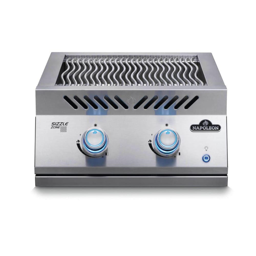 Le brûleur infrarouge SIZZLE ZONEᴹᴰ peut servir pour saisir les viandes à la perfection ou pour cuisiner des accompagnements et des sauces pendant que la surface de cuisson principale est en cours d’utilisation. Ce brûleur encastré double infrarouge SIZZLE ZONEᴹᴰ de 18 po vous offre beaucoup d’espace pour saisir de succulents steaks dignes d’un restaurant. Fabriqué avec le même acier inoxydable de qualité marine que les grils encastrés de la série 700, ce brûleur encastré unique convient parfaitement à votre cuisine extérieure personnalisée. Ces brûleurs à l’élégance durable ont été conçus pour une installation facile. Les grilles de cuisson de 7,5 mm qui ne nécessitent pratiquement aucun entretien produisent nos marques de grillade WAVEᴹᴰ emblématiques indiquant que votre repas a été cuisiné sur un gril de Napoléon. Allumez les brûleurs d’une seule main au moyen du système d’allumage instantané JETFIREᴹᴰ. Les boutons de commande ergonomiques créent une ambiance en toute sécurité d’un magnifique bleu, passant au rouge lorsque les brûleurs sont utilisés. Le module d’alimentation N370-1091-SER est requis pour tous les brûleurs de la série encastrée 700 qui sont utilisés dans une installation sans gril encastré 700 afin d’alimenter les boutons de commande.