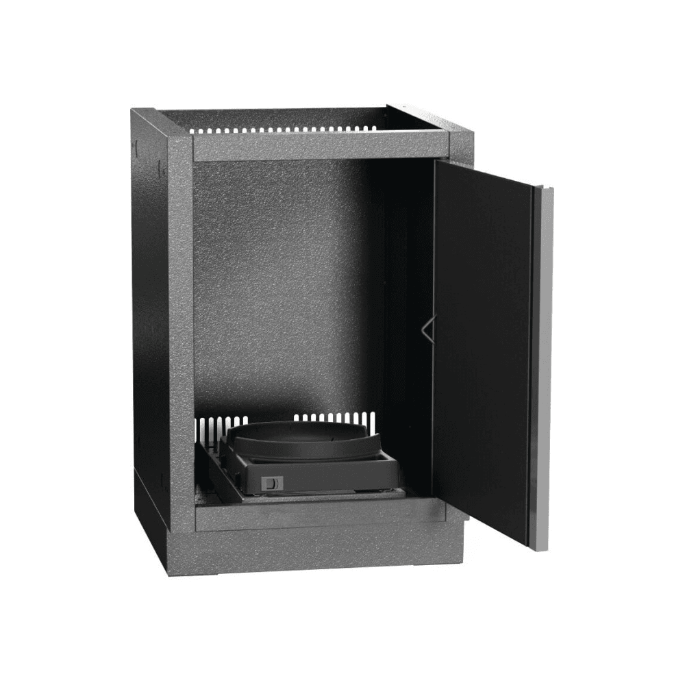 La cuisine extérieure parfaite comprend beaucoup d’espace de rangement et un fini durable qui saura résister aux éléments. Le cabinet OASISᴹᴰ pour réservoir de propane est doté d’une porte en acier inoxydable et d’un support à réservoir coulissant qui stabilise le réservoir et en facilite le remplacement. Fabriqué en acier galvanisé recuit avec une peinture à base de poudre de couleur graphite, le cabinet est doté d’un fini plus durable grâce à un revêtement spécial à deux couches. L’installation est simple puisqu’il est vendu entièrement assemblé et possèdent des plaques poinçonnées pour les raccordements électriques et la tuyauterie pour le gaz, et comprend également des pieds de nivellement ajustables. Pour bénéficier d’un rangement parfait pour votre réservoir de propane, ajoutez ce cabinet à votre cuisine extérieure OASISᴹᴰ idéal, accompagné du gril et du cabinet de gril de votre choix.