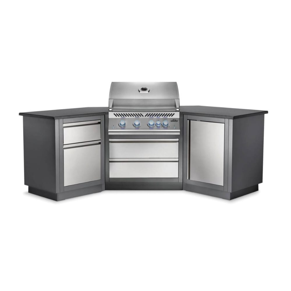 Profitez du luxe d’une cuisine extérieure grâce à l’îlot modulaire OASISᴹᴰ 200 en forme d’aile. Il offre la quantité parfaite de rangement et d’espace de travail ainsi qu’un gril à gaz pleine grandeur de 32 pouces de la série 700. Chaque cabinet est conçu pour durer, grâce à leur fabrication en acier inoxydable et en acier galvanisé recuit avec une peinture à base de poudre de couleur graphite. Personnalisez complètement cet espace de travail en choisissant votre propre comptoir avec le matériel et le fini qui s’agencent à votre style. Il ne reste plus qu’à effectuer l’installation à l’aide des instructions fournies. Les îlots modulaires OASISᴹᴰ sont faciles à installer. Les modules possèdent des plaques poinçonnées pour les raccordements électriques et la tuyauterie pour le gaz et l’eau, ainsi que des pieds de nivellement ajustables. Profitez d’une cuisine extérieure parfaite grâce aux nombreux espaces de rangement pratiques et au fini durable qui résistera aux éléments.