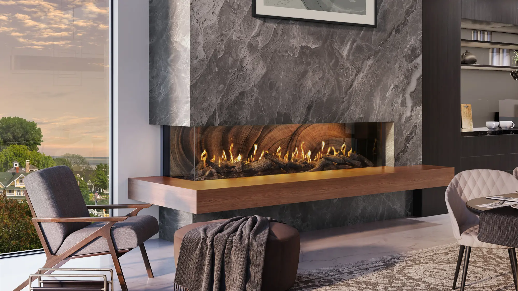 Le foyer à gaz d’angle Enlight sublime votre aménagement avec une touche architecturale artistique. Choisissez un emplacement à gauche ou à droite, disponible en longueurs jusqu’à 2,4 m et en hauteurs jusqu’à 1,52 m, pour illuminer un coin de flammes éclatantes.