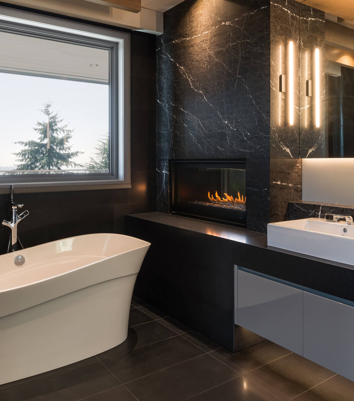 Bien que l’on puisse rejeter l’idée d’installer un foyer dans une pièce dans laquelle les gens passent généralement le moins de temps, un foyer transparente peut doubler l’utilisation en rendant le foyer visible depuis une chambre ou une salle commune.