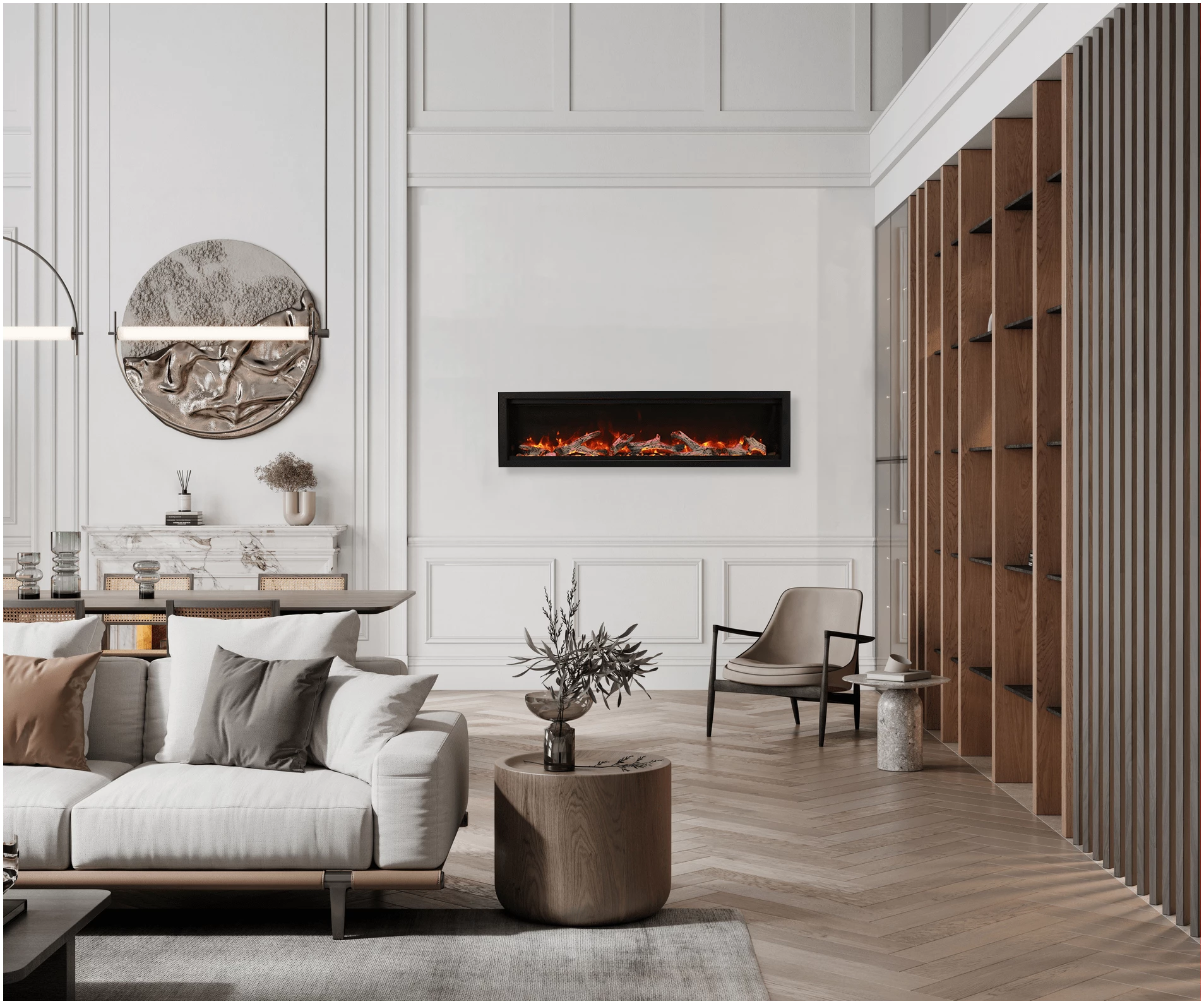 Foyer électrique Amantii Symmetry Smart intérieur/extérieur compatible WiFi, comprenant une télécommande multifonction, un moteur à plusieurs vitesses et un ensemble de bûches de bouleau de 10 pièces