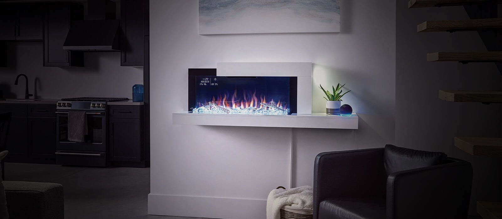 Le nouveau foyer électrique mural Stylusᴹᴰ comprend un port USB double à DEL intelligente qui indique que votre appareil mobile est rechargé en passant du rouge au vert. Réglez la couleur et la luminosité des flammes captivantes pendant que le lit de braises est illuminé par le bas pour obtenir le summum de la personnalisation. Le foyer Stylusᴹᴰ est autant un point d’intérêt élégant qu’une source de chaleur fonctionnelle pour de grandes pièces. Il est parfait pour agrémenter votre décor contemporain ou pour donner une touche transitionnelle à votre design actuel.