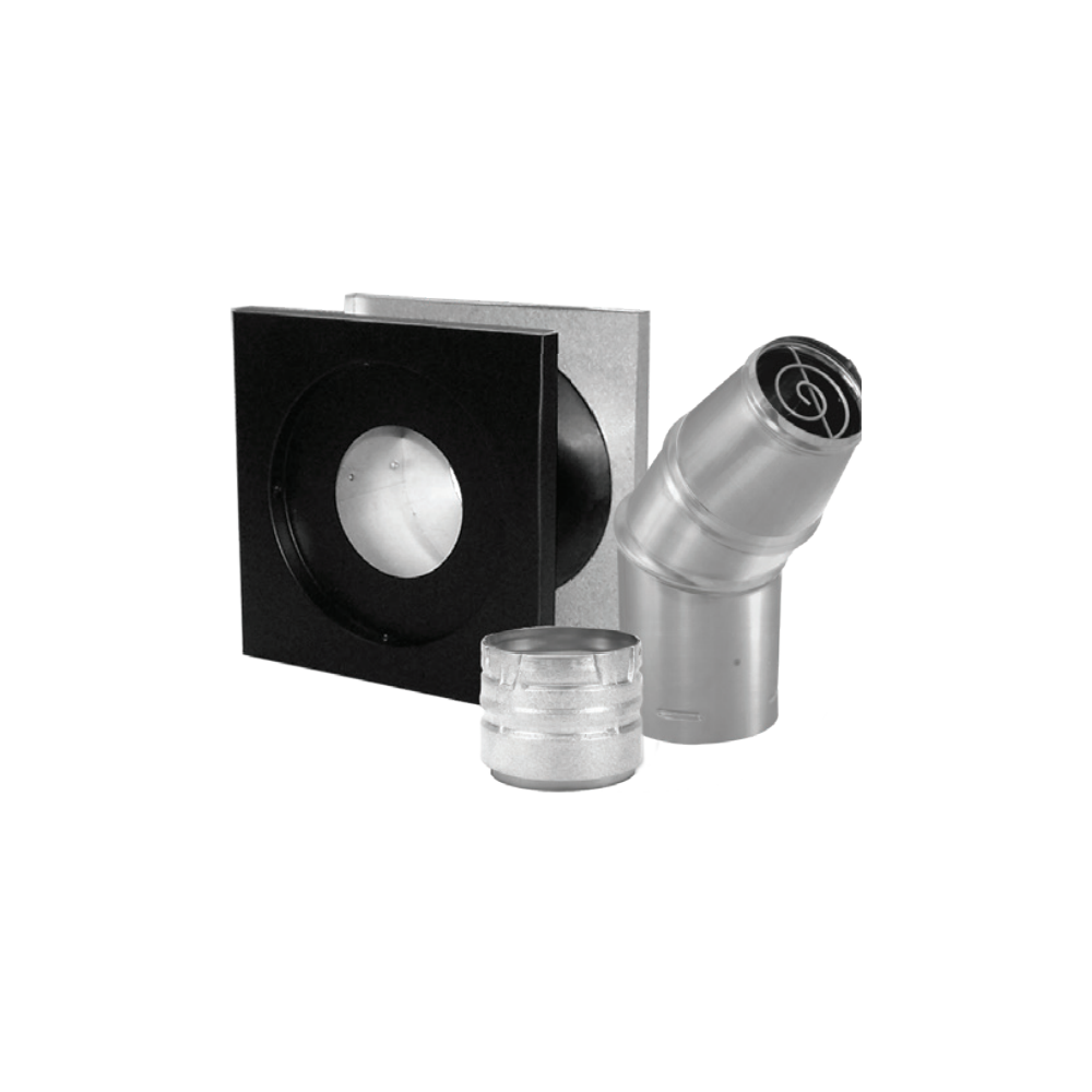 Le kit comprend : un capuchon horizontal rond, un dé à coudre mural et un adaptateur pour appareil. Longueurs de tuyaux non incluses. Le kit de 4 po comprend un adaptateur/augmentation pour appareil électroménager de 3 à 4 po, peint en noir.