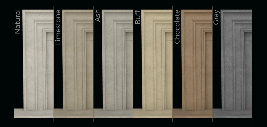 Tout comme nos autres manteaux de cheminée en pierre architecturale moulée, les nouveaux manteaux « Picture frame » sont disponibles dans nos 6 couleurs Open Cast.