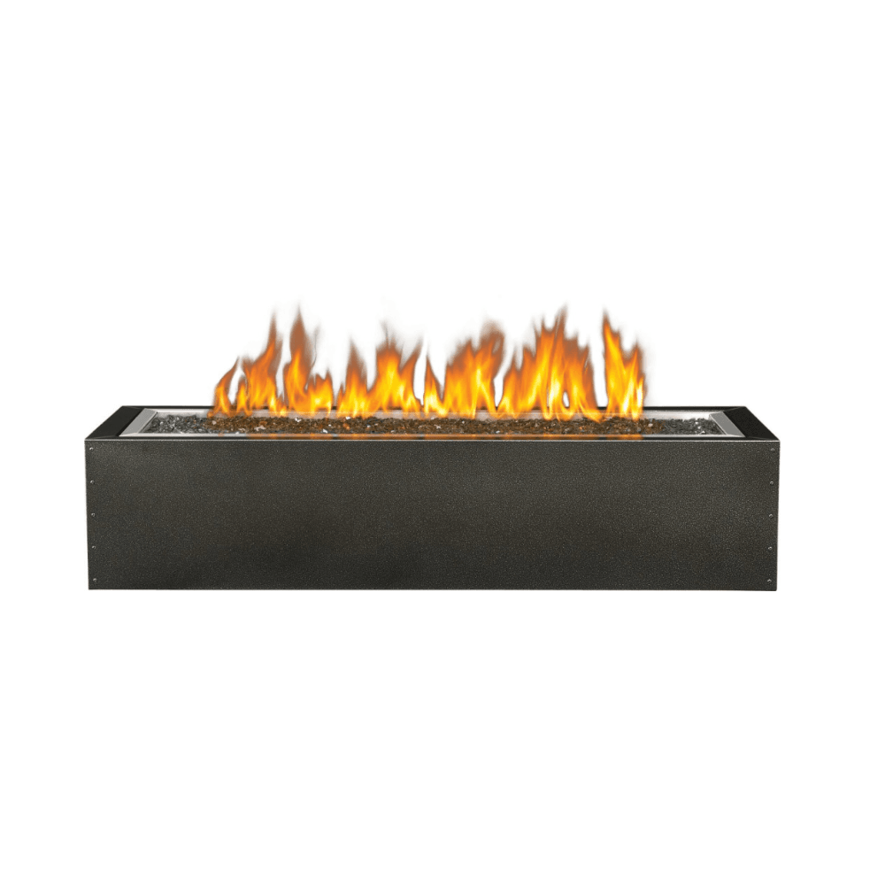 Le Patioflame® Linéaire de Napoleon comprend un meuble recouvert d’une peinture à base de poudre de couleur étain martelé et un lit de braises CRYSTALINEᴹᴰ topaze exclusif. La porte pratique avec charnière à piano facilite l’accès au panneau de commandes, et la soupape de sécurité coupe l’alimentation en gaz lorsque la flamme s’éteint. Le brûleur et le couvercle avec poignée sont faits d’acier inoxydable brossé résistant aux intempéries. Voilà un appareil réellement unique avec un profil étroit d’aspect contemporain qui agrémente le plaisir de vivre à l’extérieur.