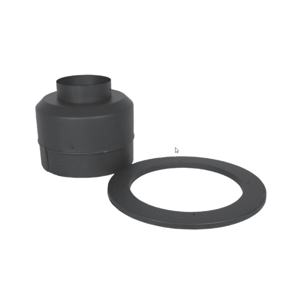 Support de finition rond pour utilisation sur plafond plat. Diamètre de 5″ et 6″ seulement disponible. S’adapte à un cadre de 12-3/8″ x 12-3/8″. L’adaptateur intégré accepte les tuyaux de poêle à paroi simple ou à double paroi. Le collier de finition amovible permet de fixer le collier en place une fois la finition du plafond terminée.