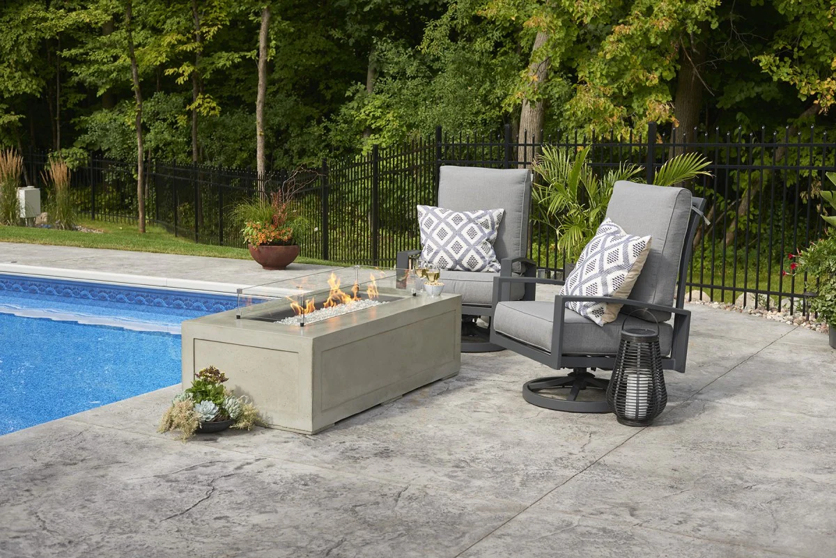 La table de feu Cove Linear 1242 en béton vous fera passer de beaux moments à l’extérieur et se marie bien avec le décor épuré industriel.