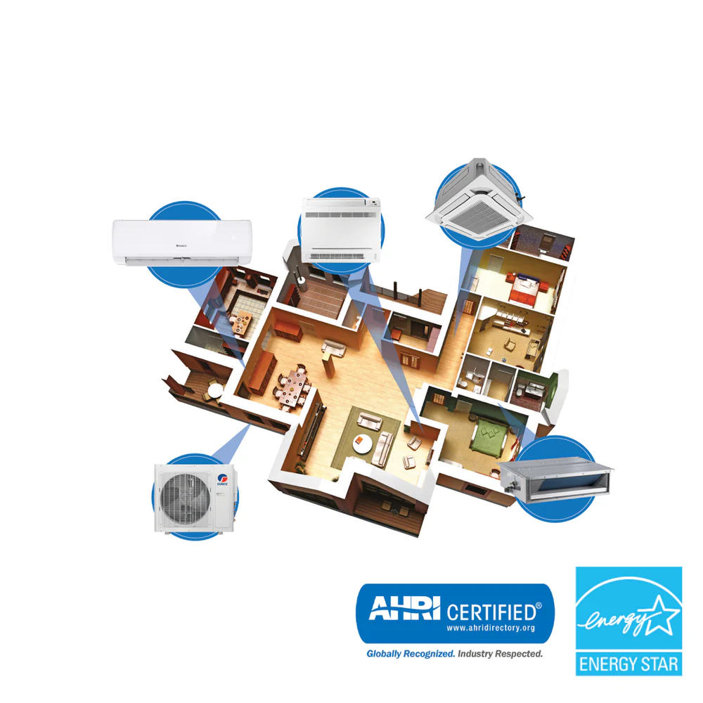 GREE introduit la flexibilité d’aménagement en alimentant simultanément jusqu’à cinq unités intérieures avec une unité extérieure. Pour une flexibilité encore plus grande, assortissez vos unités intérieures parmi notre sélection d’unités murales, de mini-consoles de plancher, de conduits gainables et de cassettes à plafond pour créer sur mesure votre système de chauffage et de refroidissement Free Match.